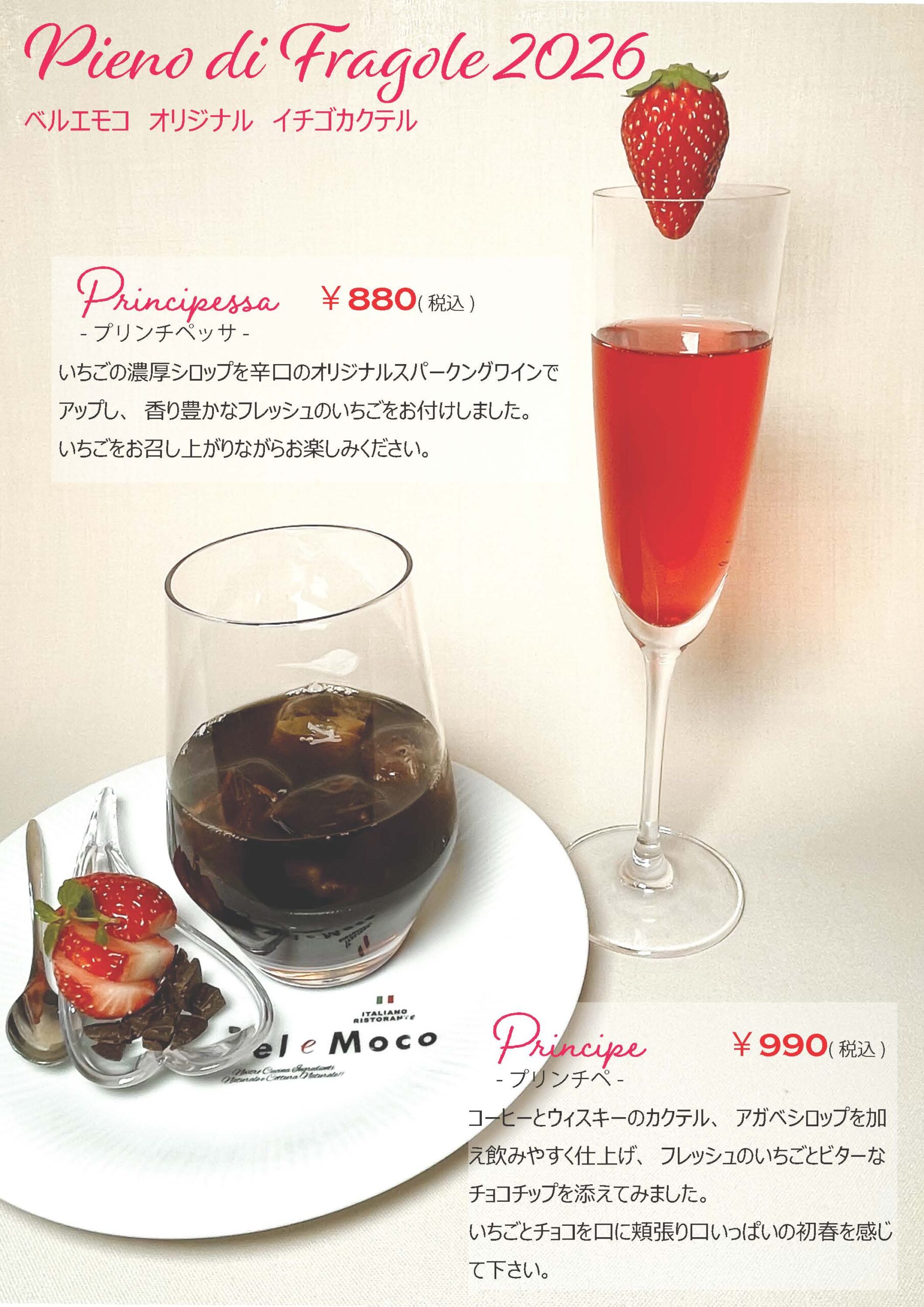 プリンチペッサはフレッシュいちごの華やかな香りが広がる一杯。